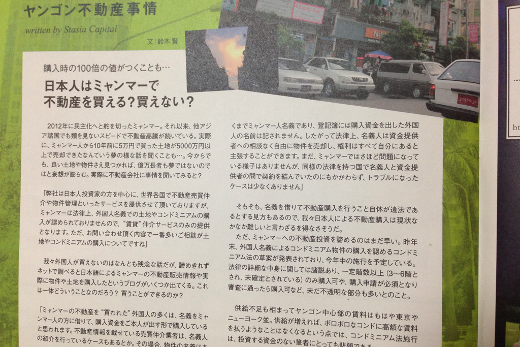 スズキさんはフリーペーパーのI LOVE YANGONで不動産について執筆してますよ。